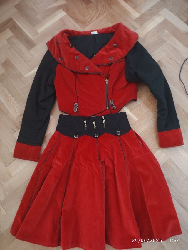 Traje gótico terciopelo rojo-negro.Falda chaqueta