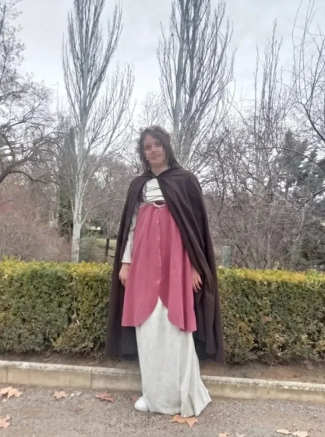 Conjunto de inspiración medieval con con falda larga y sobrevesta rosa. Aproximadamente 130 cm de hombros hasta abajo, para una niña aproximada de 11, 12 años