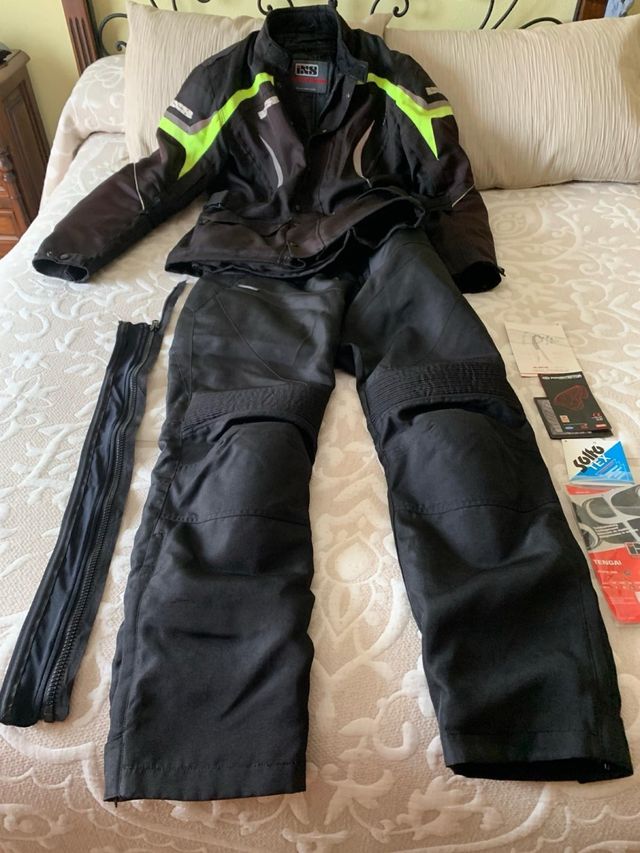 Detalles del productoConjunto de chaqueta y pantalón de moto de la marca IXS, con tecnología Gore-Tex.