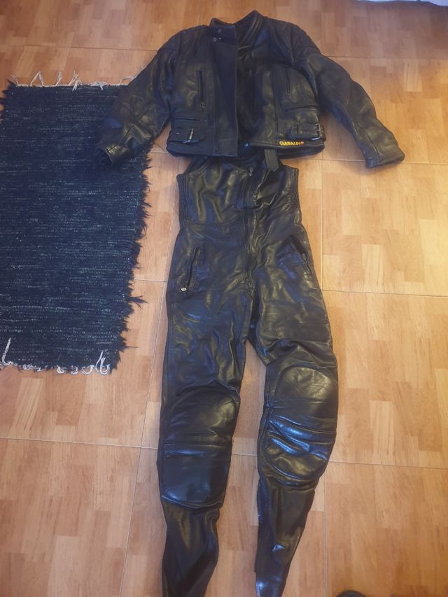 Detalles del productoConjunto de moto de piel para mujer, Está compuesto por una chaqueta y un pantalón. -Piel negra.