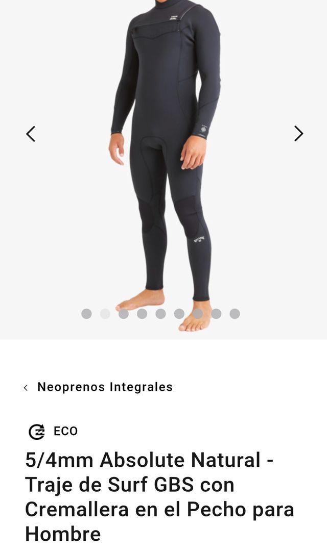Detalles del productoTraje de surf integral Billabong Absolute Natural de 5/4mm. Cremallera en pecho. Material Eco.