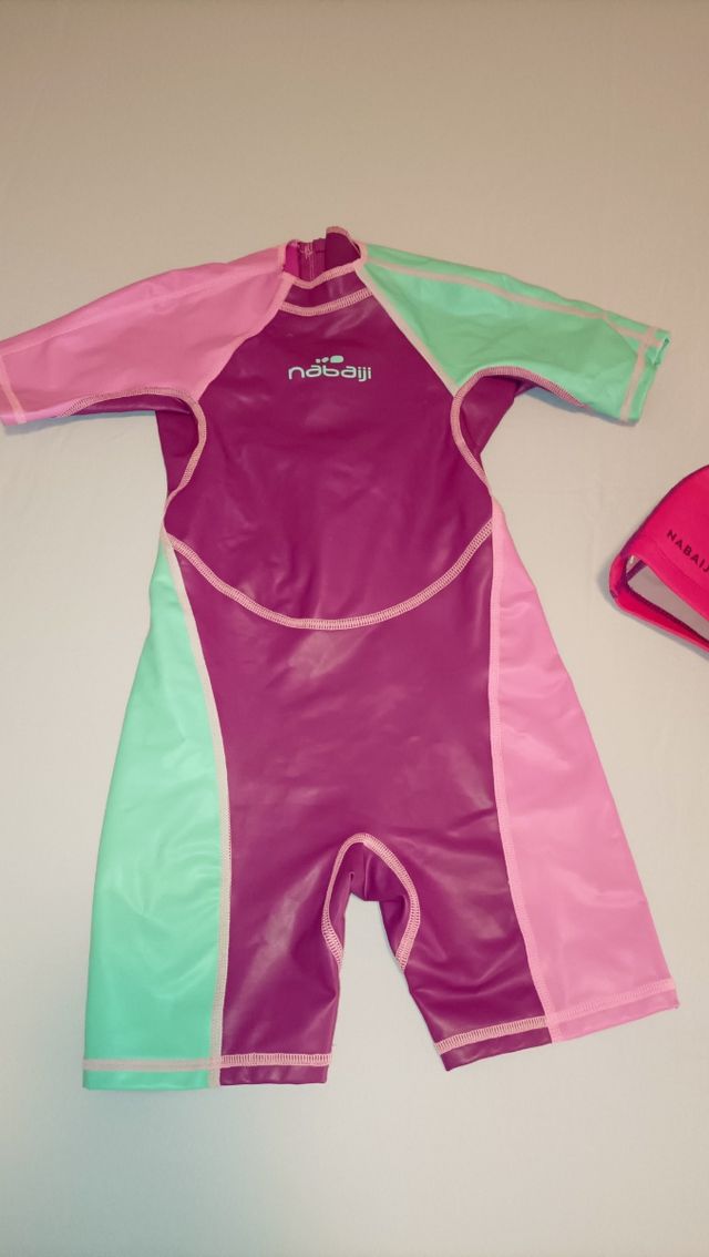 Traje de neopreno niña y usado solo 2 veces (le falta etiqueta) para 4/5 años.lleva gorro incluido