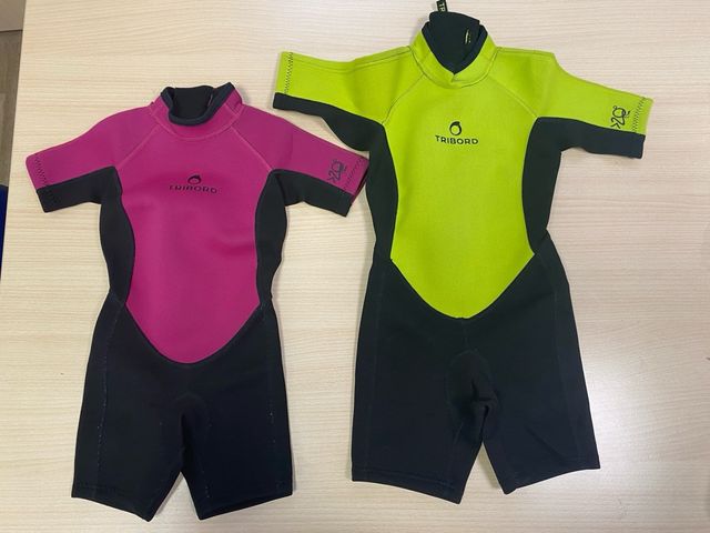 Detalles del productoDos trajes de neopreno para niño de la marca Tribord. Ideales para actividades acuáticas.