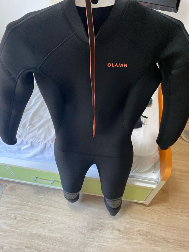 Traje de neopreno Olaian, impecable. - Talla: M - Color negro - Cremallera frontal - Refuerzos en rodillas el traje solo 60€, el calzado 12€ y todo juntos 66€