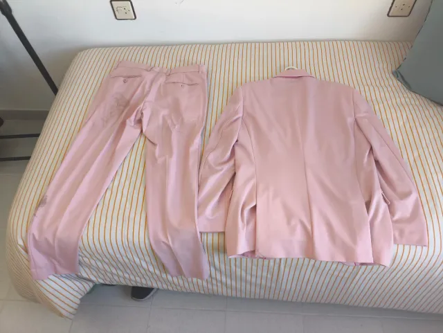 Traje rosa chaqueta y pantalón