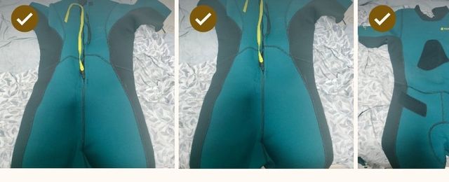 Traje de neopreno para surf en buen estado. - Color verde azulado y negro. - Cremallera frontal. - Mangas cortas.