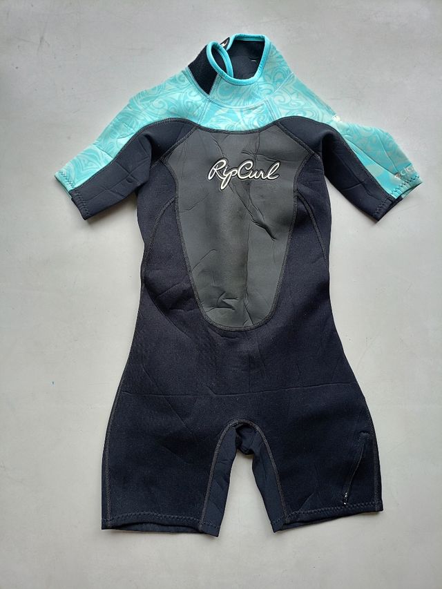 Traje de neopreno Rip Curl, talla 10, en buen estado. - Color azul y negro. - Diseño elegante. - Cremallera frontal.
