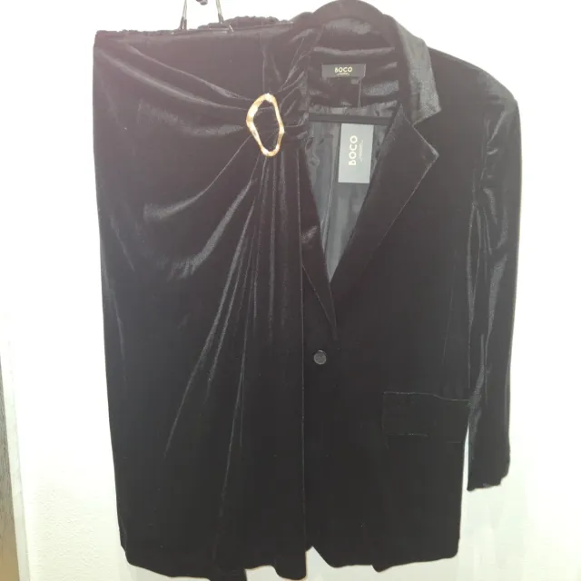 Traje Terciopelo Negro Falda Midi Drapeada.