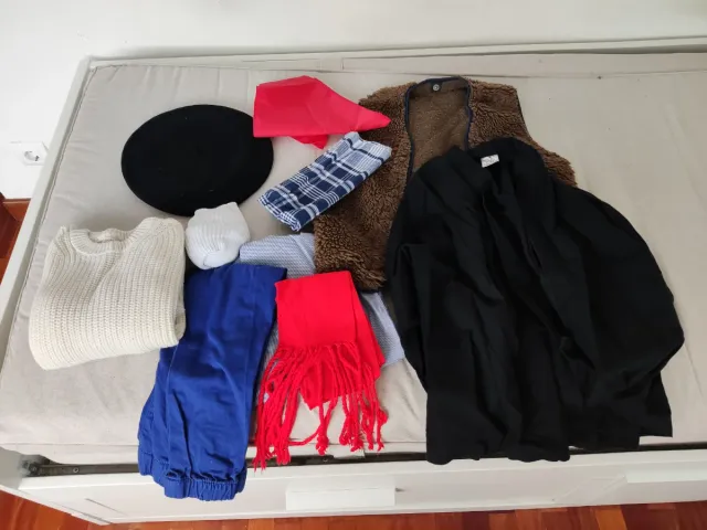 - Pantalones a rayas talla 8 con cintura de goma. 80 CMS de cintura a tobillo