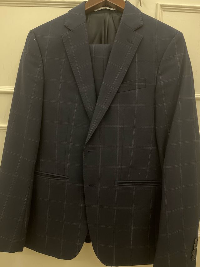 Traje Zara Completo Cuadros Azul y Gris