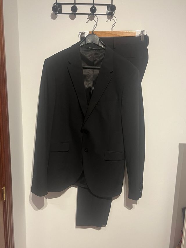 Traje Zara Negro Talla 42 Chaqueta y Pantalón