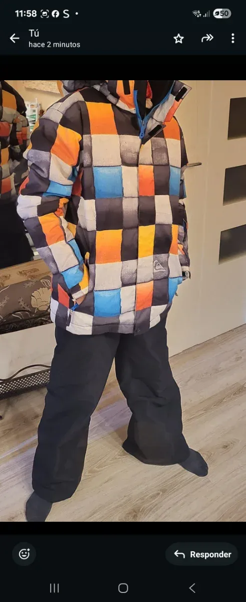 Detalles del productoConjuntos de esquí con un diseño llamativo y colorido. Pantalones marca Mountain talla S azul y M negro. Cazadora matca Quicksilver talla 14 años. Perfecto Estado.Cada uno 70€