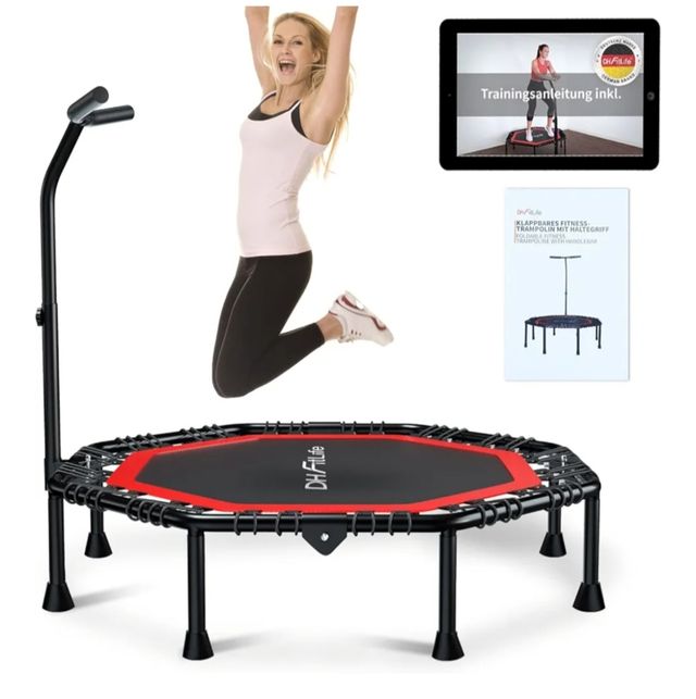 Detalles del productoDH FitLife Trampolín de fitness plegable, silencioso, sin instalación, 128 cm para interior y exterior, con tres niveles de agarre ajustables. 100% nuevo. Medidas del producto