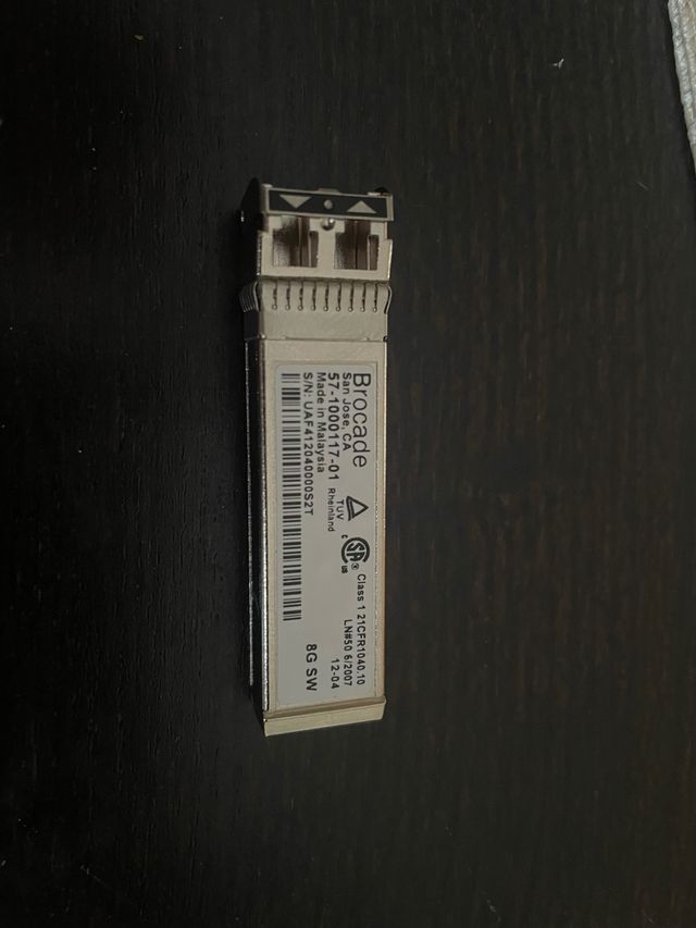 Detalles del productoMódulo transceptor SFP+ de 8Gbps Fibre Channel shortwave (850nm, LC, MMF, hasta 150m), usado comúnmente en switches y equipos SAN de Brocade.