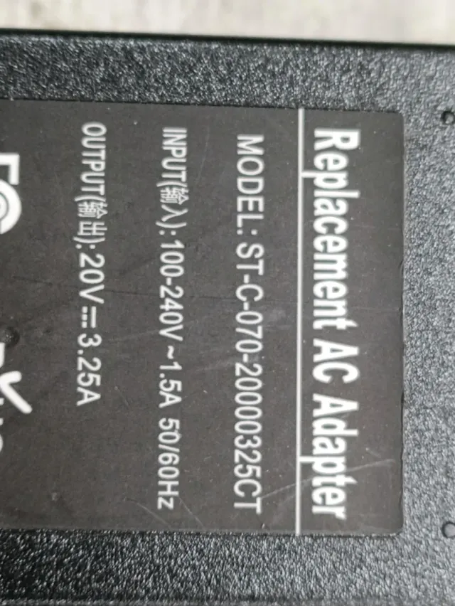 Adaptador de corriente alterna, para pc portátil Toshiba. - Modelo: ST-C-070-20000325CT - Entrada: 100-240V~1.5A 50/60Hz - Salida: 20V 3.25A