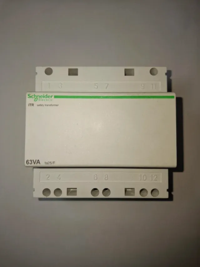 Transformador de seguridad modular Schneider Electric. - Modelo: ITR - Capacidad: 63VA - Tensión: 12-24 VCA