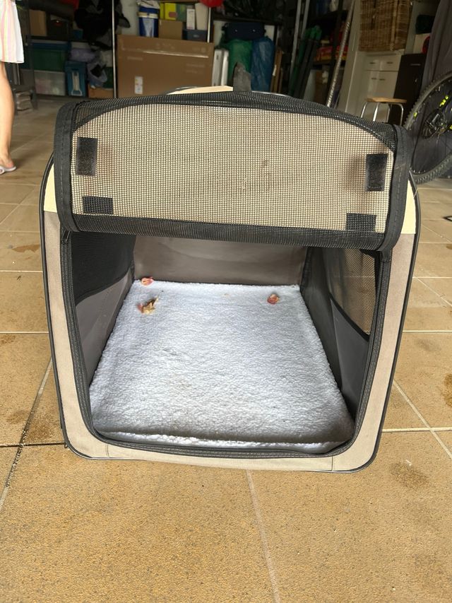 Detalles del productoTransportín para mascotas, ideal para viajes. Está en buen estado, aunque presenta algunas señales de uso.