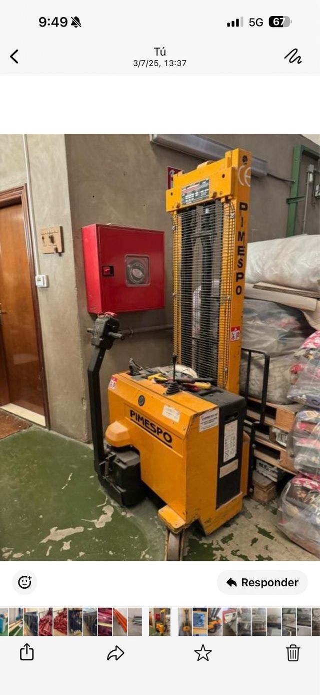 Traspale eléctrico de la marca Pimespo. - Color amarillo. - Diseño robusto. - Incluye cargador