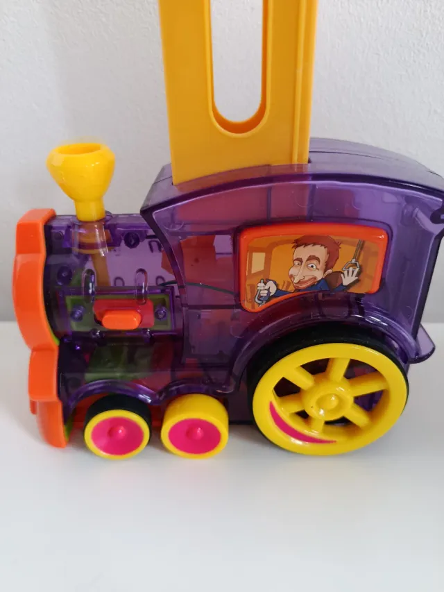 Tren efecto mariposa de juguete a pilas de el hormiguero Anda y pone las fichas en el suelo Funciona perfectamente, le falta una rampa q traía