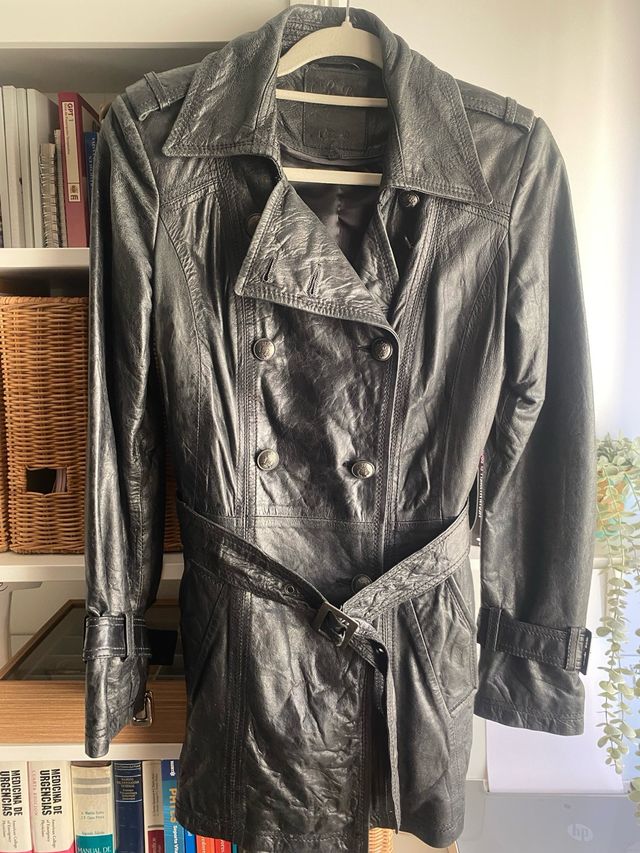 Trench de piel negra Talla S