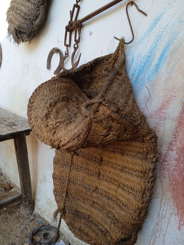 tres alforjas antiguas de esparto