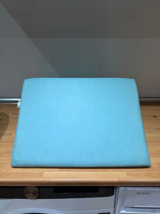 Triángulo postural de color azul claro, diseñado para elevar las piernas. Marca Ecopostural. -- Forma triangular ergonómica