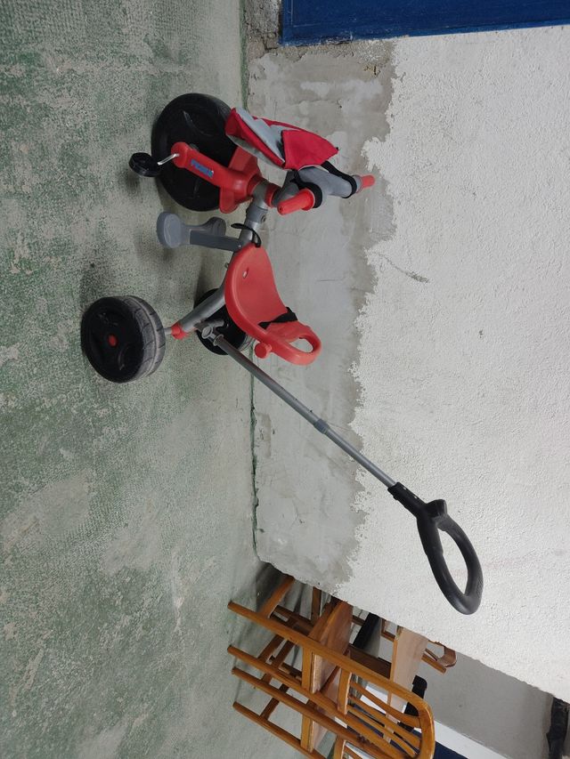 Triciclo para bebé - Color rojo y gris. - Incluye cesta portaobjetos.