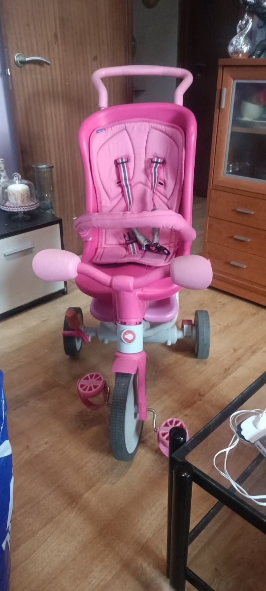 Triciclo color rosa con dos sillines distintos