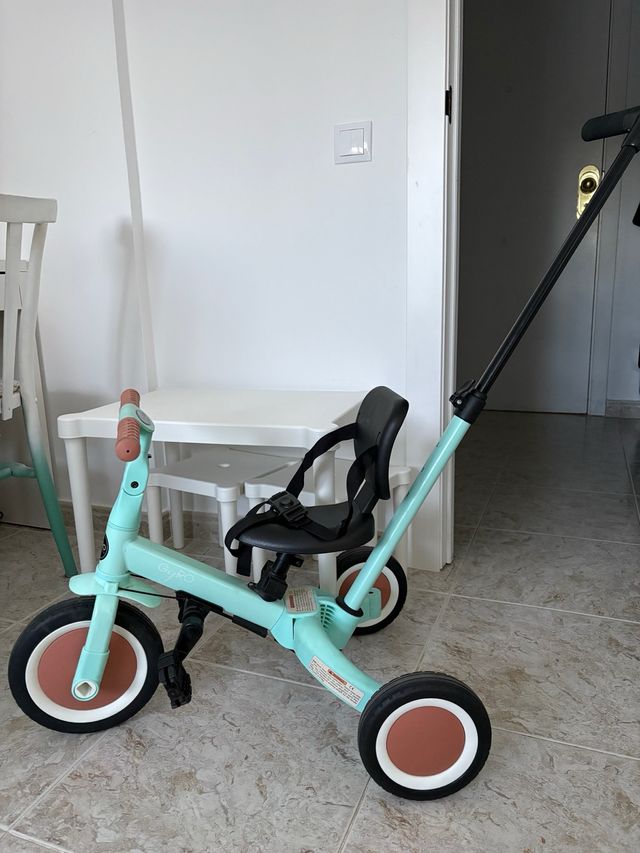 Detalles del productoVendo triciclo evolutivo de la marca Olmitos, modelo Gyro, en color turquesa, en muy buen estado. Ideal para acompañar el crecimiento del peque, ya que se adapta a diferentes edades.