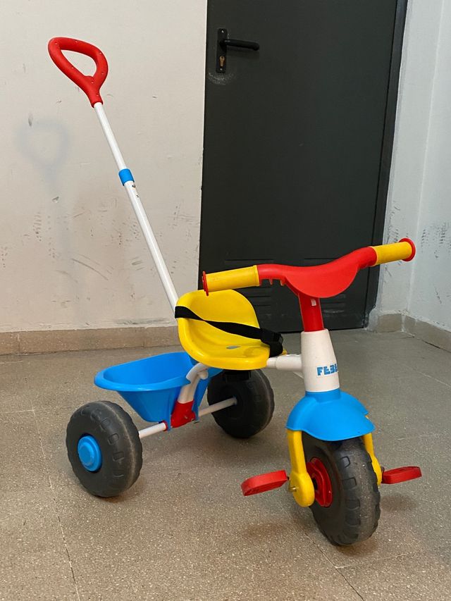 Detalles del productoVendo triciclo Feber Baby Trike con estructura metálica resistente, cinturón de seguridad, asa regulable/desmontable y cesta. Adecuado para niños desde los 12 meses hasta 3 años.