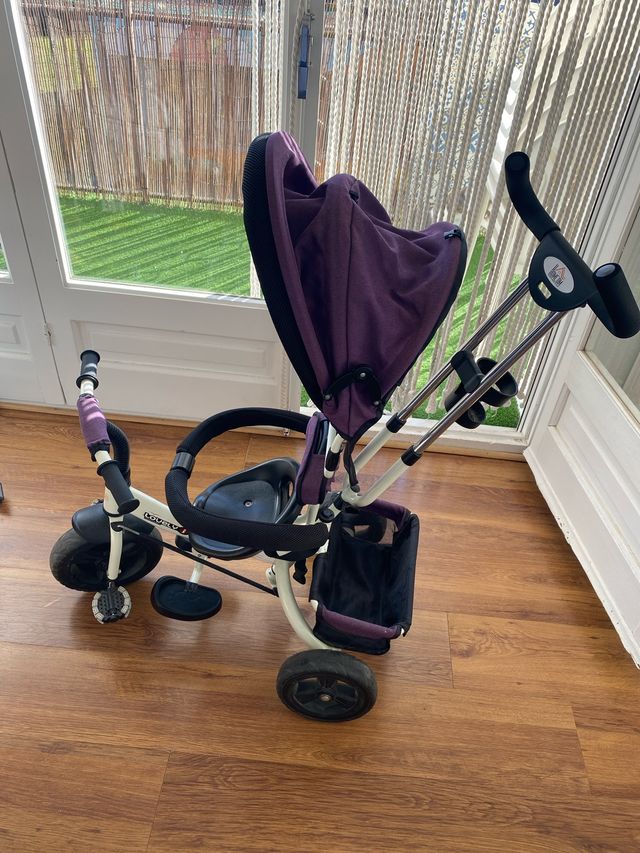 Triciclo infantil en color morado, ideal para los más pequeños. - Asiento cómodo. - Capota protectora. - Cesta de almacenamiento. - Empuñaduras de goma.