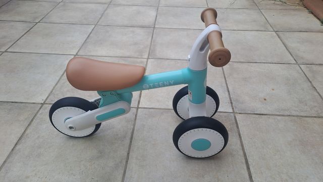 Detalles del productoPreciosa bicicleta triciclo TEENY de la marca Olmitos, ideal para los más pequeños. Es de color turquesa claro y tiene detalles en marrón y blanco.