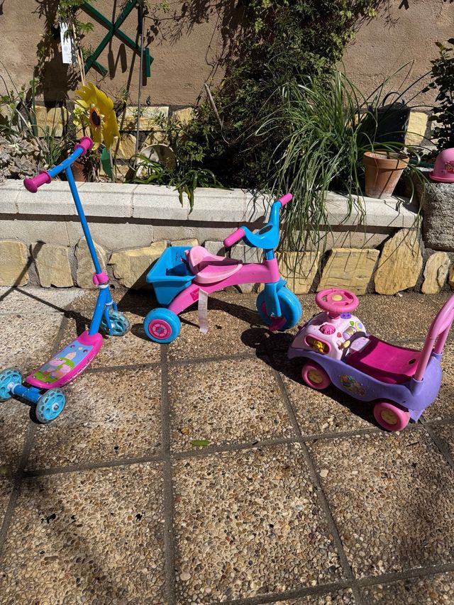Detalles del productoLote de tres juguetes para niños: un triciclo, un patinete y un correpasillos.