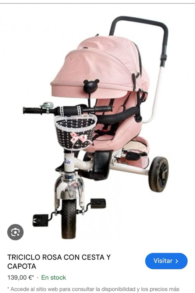 Triciclo rosa con cesta y capota