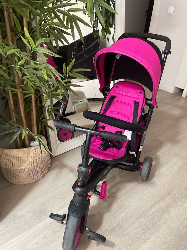 Detalles del productoTriciclo Smartrike en color rosa, ideal para acompañar a los más pequeños en sus paseos.
