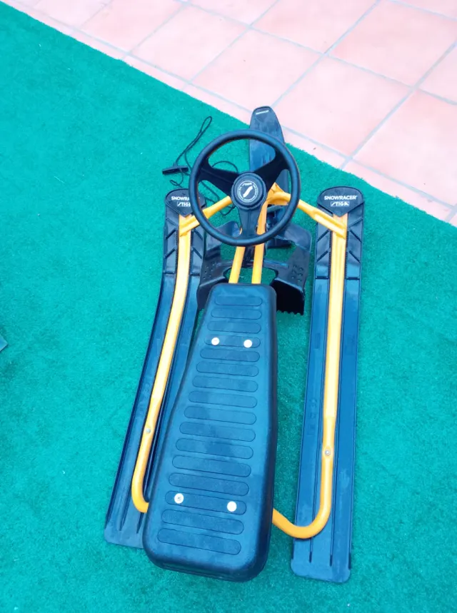 - Construcción en plástico negro y cuadro de metal amarillo.
