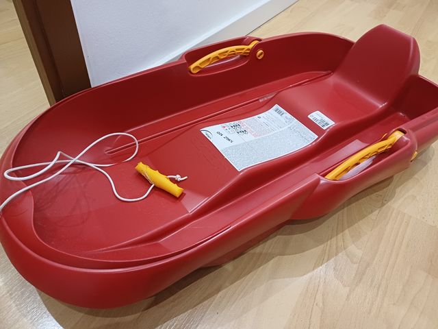 Trineo de nieve Mrz 100 en color rojo. - Diseño ergonómico para mayor comodidad. - Frenos laterales. - Cuerda de arrastre incluida. Excelente estado, tiene 1 uso.