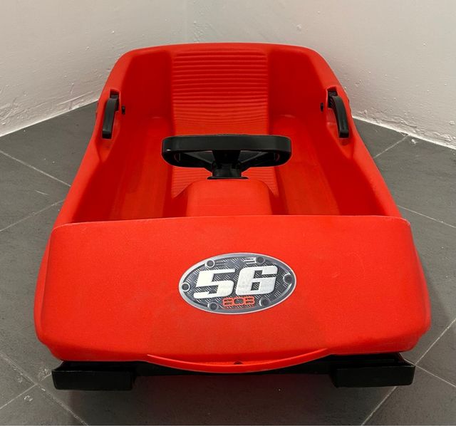 Trineo de nieve rojo con volante y frenos