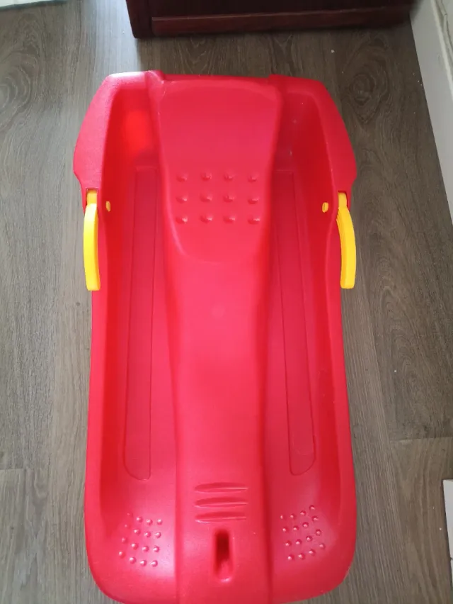 Trineo rojo con asas amarillas