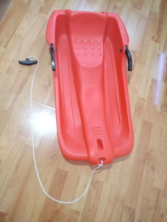 Trineo rojo, para disfrutar de la nieve, SIN ESTRENAR Y SIN RASGUÑOS. - Con cuerda para facilitar el arrastre. Plástico resistente.