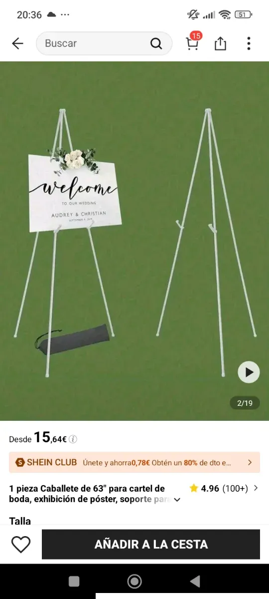 Trípode blanco de 63 pulgadas, perfecto para exhibir carteles, pósteres o como soporte para eventos. - Altura: 63 pulgadas. - Color: Blanco. - Material: Metal.