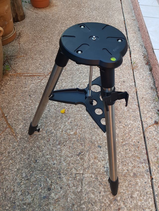 Detalles del productoTripode muy transportable, con una bandeja portaoculares especialmente diseñada para transportar o guardar sin ocupar sitio. Tiene burbuja de nivel en la parte superior. Incluyo el portamandos para manos Nexstar + Patas con marcas regulables. Modelo de tripode intermedio (el que viene con la Evolution 6 y 8), mas robusto que el de las monturas Nexstar SE y menos pesado que el Nexstar CPC (El que viene con la Evolution 9'25). Especialmente recomendable para aquellas personas que compraron un Nexstar 8 SE, ya que el tripode original vibra con el 8". Con este tripode ganas ese punto de estabilidad que falta.