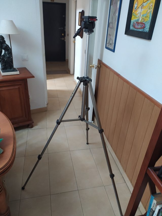 Detalles del productoTripode profesional, material de calidad, ver fotos. Viene hasta con funda para transportarlo. Alturas graduables hasta un máximo de 1m 65 cm, se puede girar para hacer barridos de cámara e inclinaciones. Dispone, como se puede ver en las fotos, de patas plegables a diferentes alturas, ya sea para grabar a alturas pequeñas como a alturas de 165cm. Tiene los topes de las patas adaptables tanto para tierra como suelo liso.