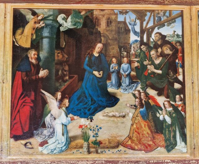 Detalles del productoCopia del Tríptico Portinari del pintor flamenco Hugo van der Goes, la Adoración de los Pastores. Esta reproducción hecha sobre tabla lleva una pequeña veladura y está barnizada con textura.