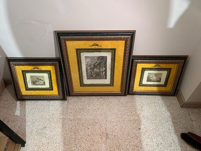 Detalles del productoConjunto de tres cuadros decorativos, ideales para añadir un toque especial a tu dormitorio o salón. Cada pieza presenta un diseño clásico con marcos ornamentados.