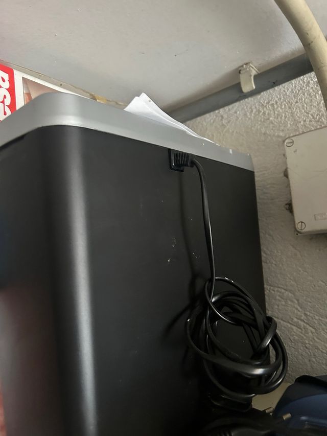 Trituradora de papel de color negro. Ideal para uso doméstico o de oficina. - Diseño compacto. - Cable de alimentación enrollable.