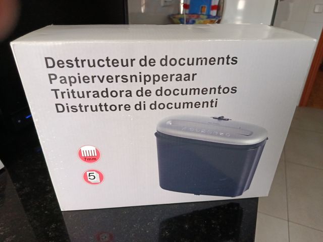 Detalles del productoDestructora de documentos en perfecto estado. Es compacta y fácil de usar.
