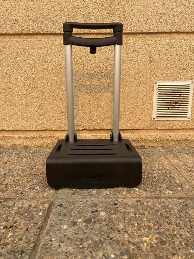 Se vende carrito trolley para transportar mochilas. Está en buen estado. - Asa de transporte superior. - Estructura de aluminio. - Base de plástico resistente.
