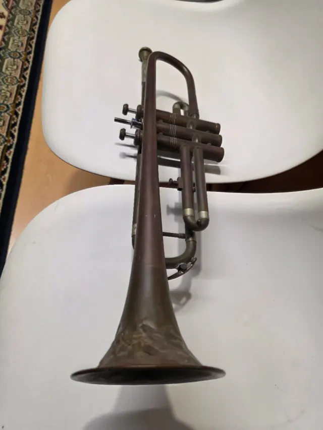 Trompeta antigua, ideal para coleccionistas o como elemento decorativo. - Instrumento musical para piezas. - Diseño clásico y ornamentado.