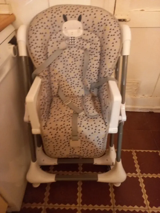 Trona de la marca asalvo con un divertido estampado. - Asiento acolchado. - Arnés de seguridad. - Estructura resistente.